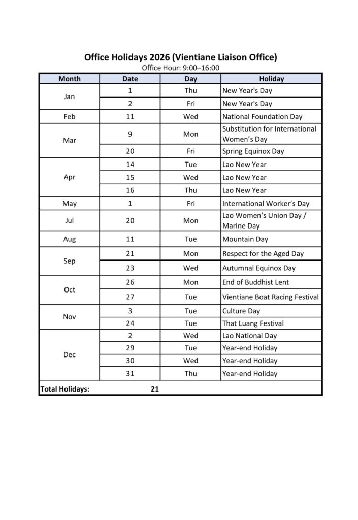 Holiday Calendar 2026